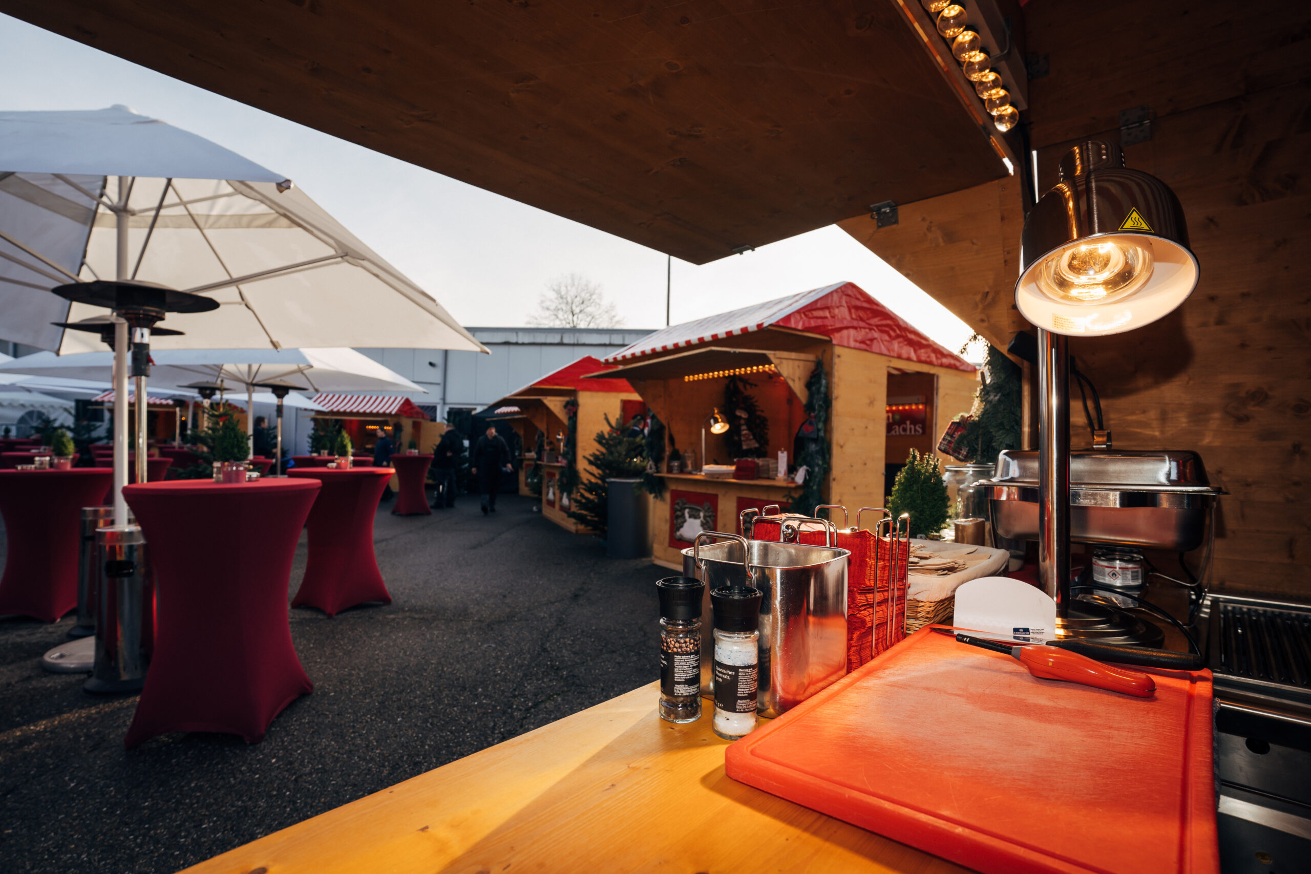 Mit unserer „Pop Up Food Market“-Lösung kommt der Weihnachtszauber ganz ohne Stress und Sorgen direkt in Ihr Unternehmen – Ihr individueller mobiler Weihnachtsmarkt. Von der Weihnachtlichen Dekoration, über die Musikanlage, den Tischen, Bänken und Stehtischen bis zur Feuerstelle incl. dem benötigten Feuerholz ermöglichen wir Ihnen alles für eine gelungene Weihnachtsfeier nach Wunsch. Für das leibliche Wohl sorgt eine große Auswahl an weihnachtlichen Speisen sowie Getränken wie Glühwein, alkoholfreiem Punsch, Bier und Softdrinks. Profitieren Sie von transparenten Kosten und sehr flexiblen Anpassungsmöglichkeiten die unsere All-Inklusiv-Lösung für Ihrer Firmen-Weihnachtsmarkt bietet – damit ist jeder Winteranlass garantiert ein voller Erfolg!